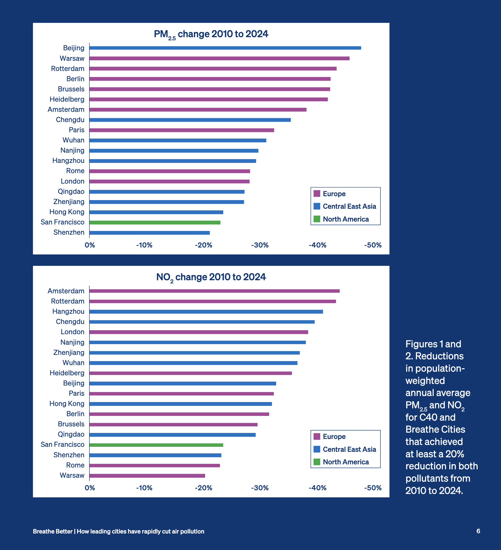 The report finds that these more breathable cities have some policy approaches in common: